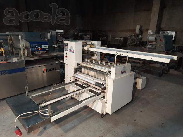Когда формуется каждый новый ряд таралли или бубликов, лента автоматически перемещается к местоположению продукта на печном противне. Противни находятся в держателе, который установлен в задней части машины (держит до 20 противней) и продвигаются вперед синхронно с формованием продукта.